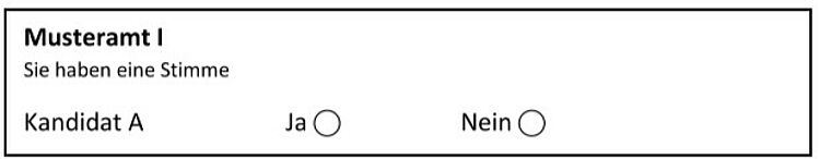 Steht für ein einzelnes Wahlamt nur ein einzelner Kandidat zur Verfügung, erfolgt die Abstimmung über eine Ja / Nein - Frage: