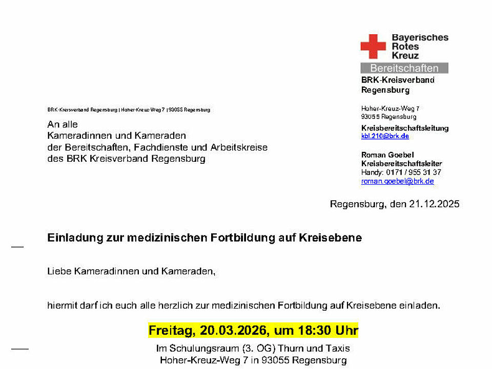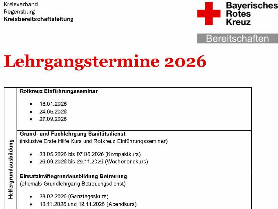 Hier sind Termine für Lehrgänge, Seminare und Weiterbildungen innerhalb des BRK Kreisverband Regensburg für alle Kameradinnen und Kameraden zu finden.